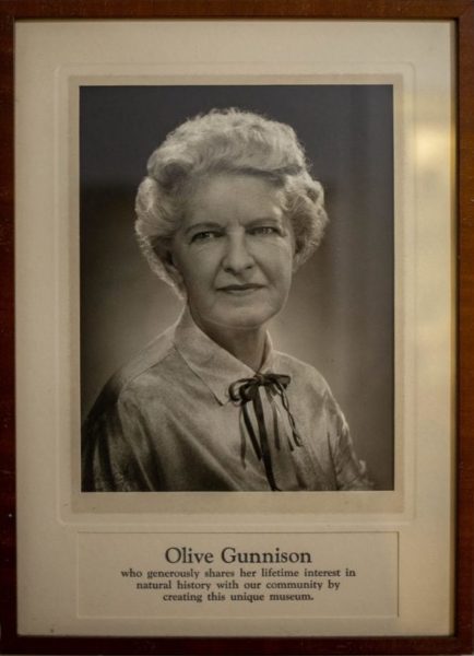 “Ever since I can remember I have collected something,” Olive Mason Gunnison would remember later. “When a small child it was various outdoor insects, worms or dead mice from a trap all of which I popped into small bottles of diluted alcohol and then arranged on a shelf to look like a museum. It wasn’t until I was twelve years old that I began to collect with a purpose.” In college she studied zoology, botany, geology and meteorology, and kept up her collecting after graduating. As her collection grew, she began to host visiting groups of schoolchildren in her home, displaying her ever-expanding collection of rocks, insects, taxidermy animals’ other curiosities.
