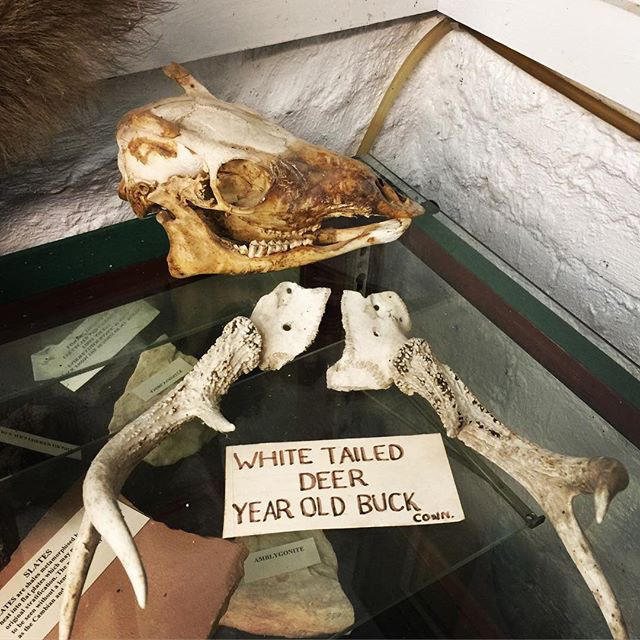 The natural history collection features hundreds of entomological specimens (including examples from the Acherontia genus of moths, the so-called “death’s head” hawkmoths), a wide variety of taxidermied birds and mammals (including a roseate spoonbill, a bobcat, and a bald eagle), and an extensive geological collection.